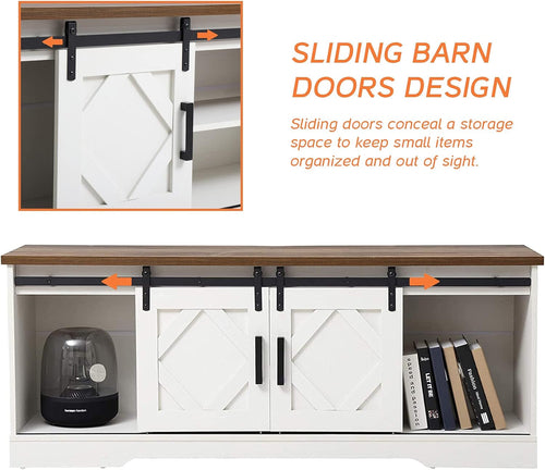 Sliding Barn Door TV Stand with Adjustable Shelves